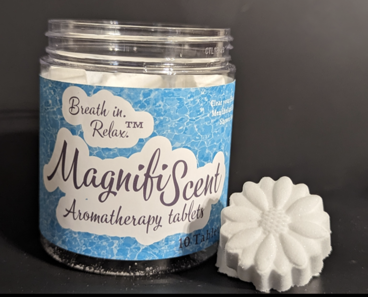 Rich-infused MagnifiScent Aromatherapy tablets with menthol Crystals and eucalyptus natural essential oils. Formulated with properties that may help with symptoms of running nose, scratchy throat, fever, coughing, sneezing and inflammation. This package contains 10 large tablets that are compatible with essential oil diffusers and humidifiers may also be used in the shower. Product is made with NON-GMO ingredients.
