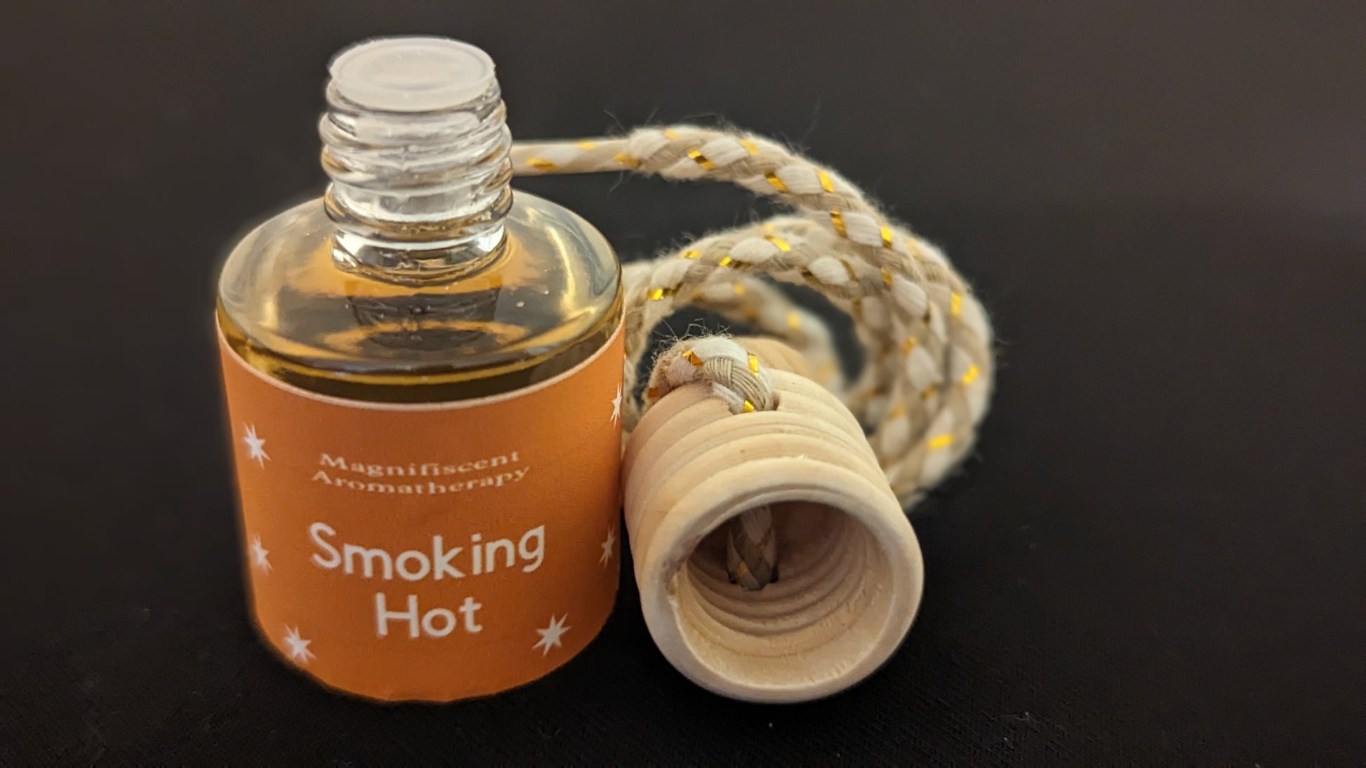 How to use: Untwist wooden cap, remove stopper, twist cap back on tightly, turn upside down for 10-15 seconds and hang around your rearview mirror.